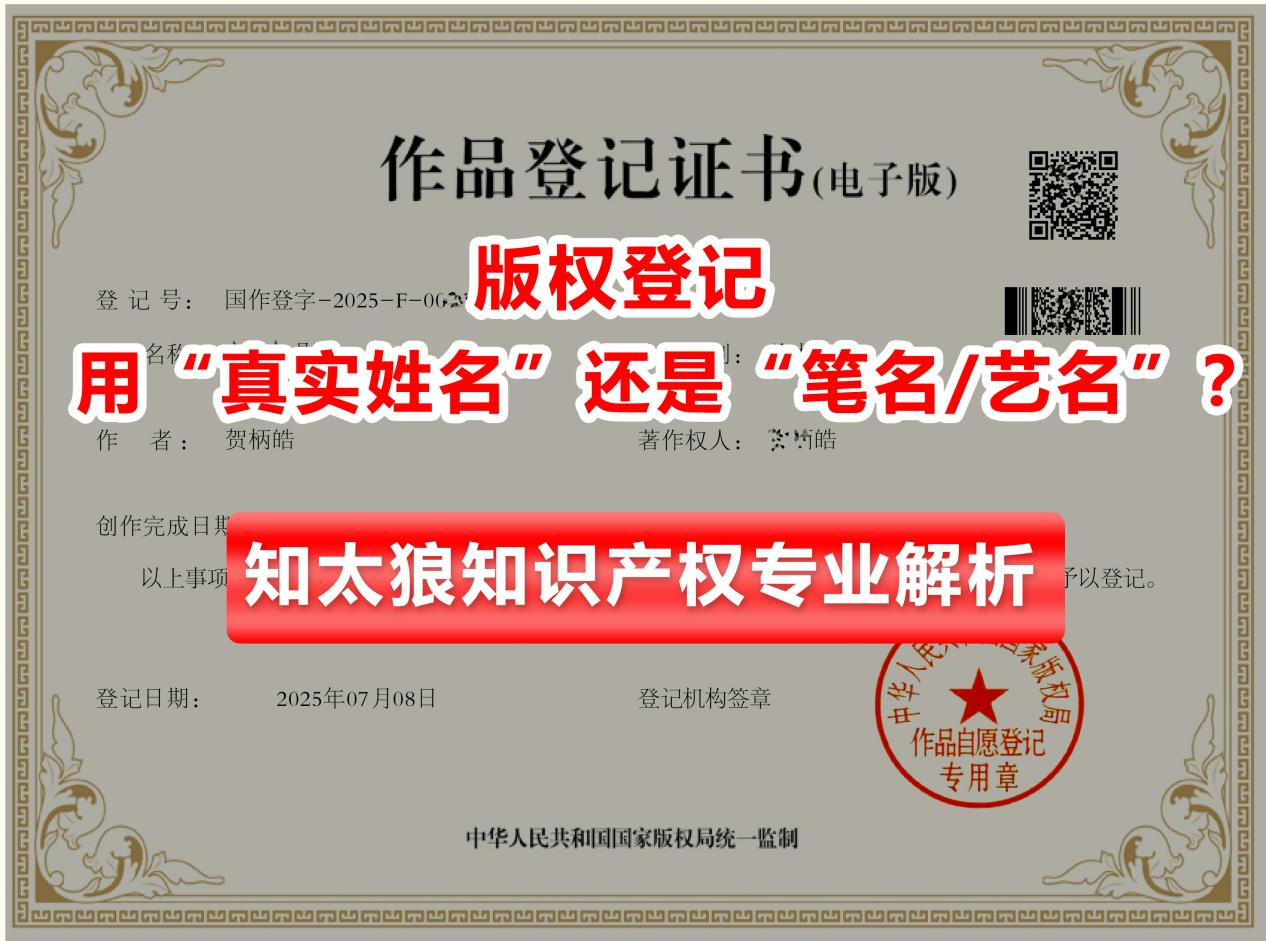 在创作完成一部小说、一幅画作、一首歌曲或一套软件代码后,许多创作者会面临一个实际而重要的问题:在进行版权登记时,究竟是使用“真实姓名”还是“笔名/艺名”更好?作为一家专业的知识产权代理公司,我们深知这个选择可能对创作者未来的权益行使和作品传播产生深远影响。知太狼知识产权将为您提供一份详尽的指南!